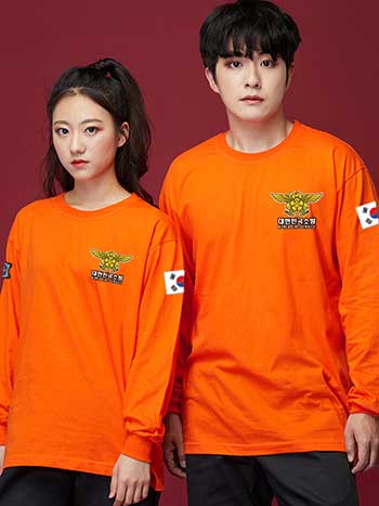 라운드(긴팔)_주황 (왼가슴, 왼소매, 오른소매, 등전면 인쇄)