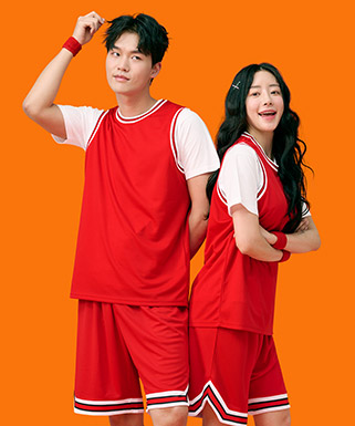 *무지 레드 농구나시 반티 세트 (상의+하의+손목아대)